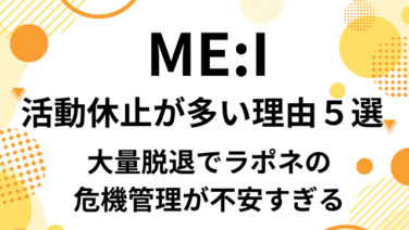 話題 ミーアイ(ME:I)に活動休止が多い理由5選!大量脱退でラポネの危機管理が不安すぎる ミーアイ(ME:I)について、「活動休止が多い」「大量脱退で危機管理が不安」と感じる声が、SNSや検索ワードで目立つようになっています。そして今回、COCORO、RAN、SHIZUKU、KOKONAの4名が、2025年12月31日をもって株... 2025.12.22 2025.12.23 話題